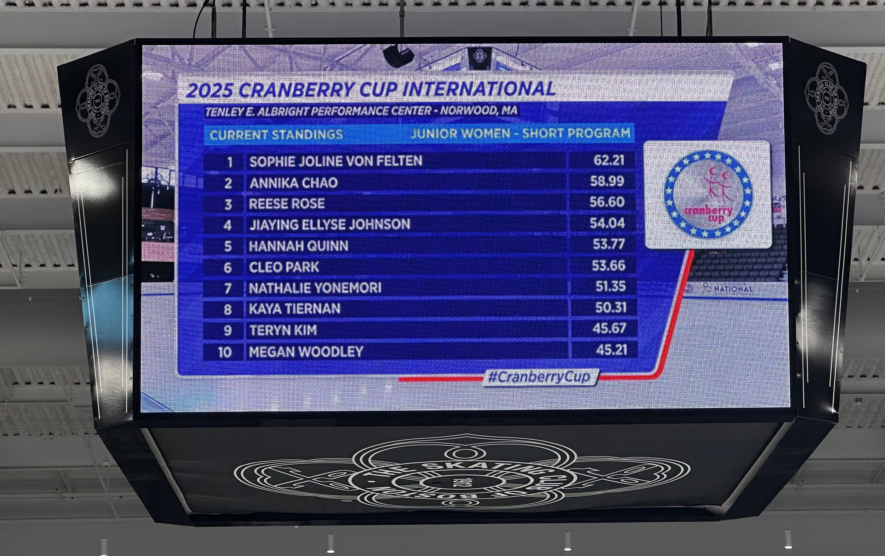 The 2025 Cranberry Cup International officially got underway Thursday with the short programs for the Advanced Novice Boys and Girls divisions. However, I didn’t make it up to Norwood, Mass. until Friday.