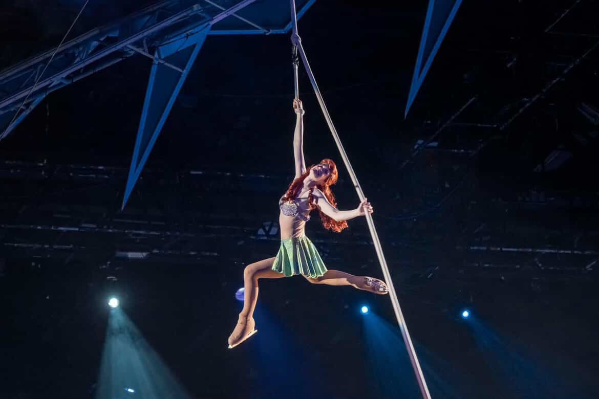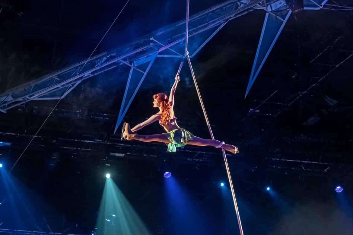 I also remember going into the show as Ariel flying in the air, especially at the very end of that segment, where I am hanging on with one hand and I'm spinning really fast and the crowd just, they scream, they love it and they call out "Ariel!" and I'm spinning so fast in the air. It's amazing. I also remember going to Rapunzel and then going up really, really high at the top and holding on, and because I'm spinning so fast up there, you just see flashes of lights and bits of the audience and I'm spinning so fast, but they are so amazed. It's just the most incredible feeling in the whole entire world and nothing I don't think will ever replace that feeling for me, which I think is hard being off the road. It's an honor. I would say it's a huge, huge, huge honor. Huge honor.